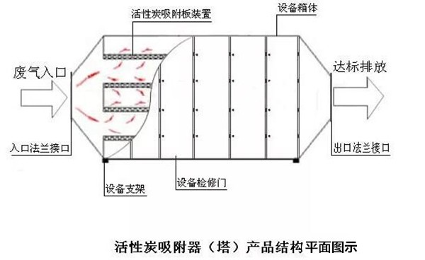 原理:通過活性炭的自然吸附能力吸附廢氣,當吸附飽和后,活性炭脫附再生或交給專業(yè)危廢公司處理。